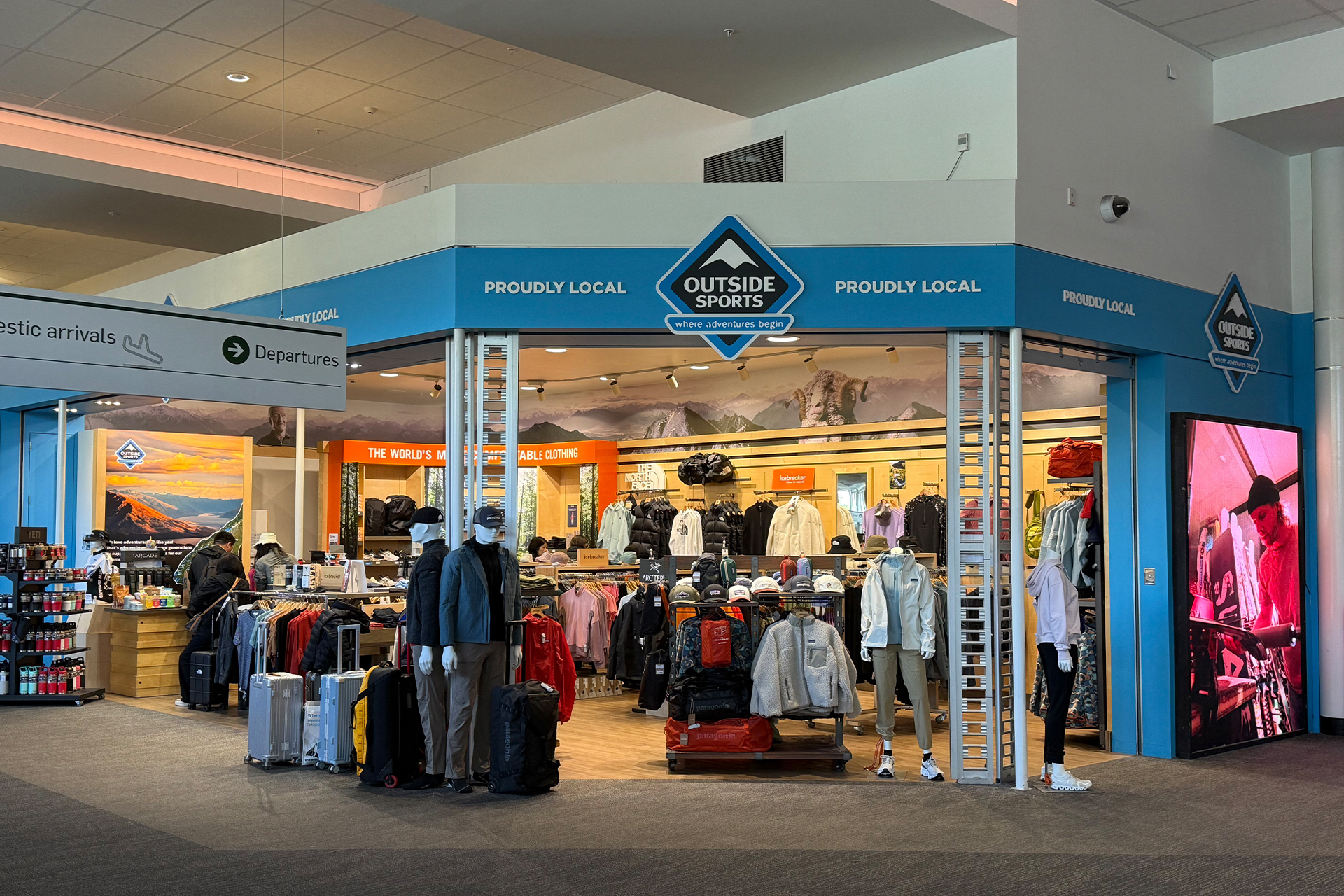 The Outside Sports store supplies Queenstown Airport visitors with everything they need for outdoor adventures throughout New Zealand's magnificent South Island.