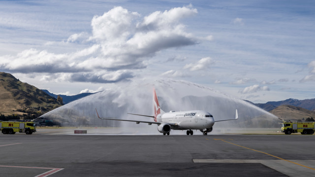 QF121 touched down at 2.31pm this afternoon, 387 days since the last scheduled international flight to Queenstown Airport.