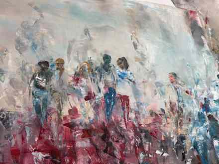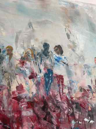 “The idea for the painting was the need for people of all races, creeds, colour, religions and viewpoints to unify in these trying times. What you see from a distance is but a blur, which comes to life as you get closer. Every time you approach, someone new appears.”