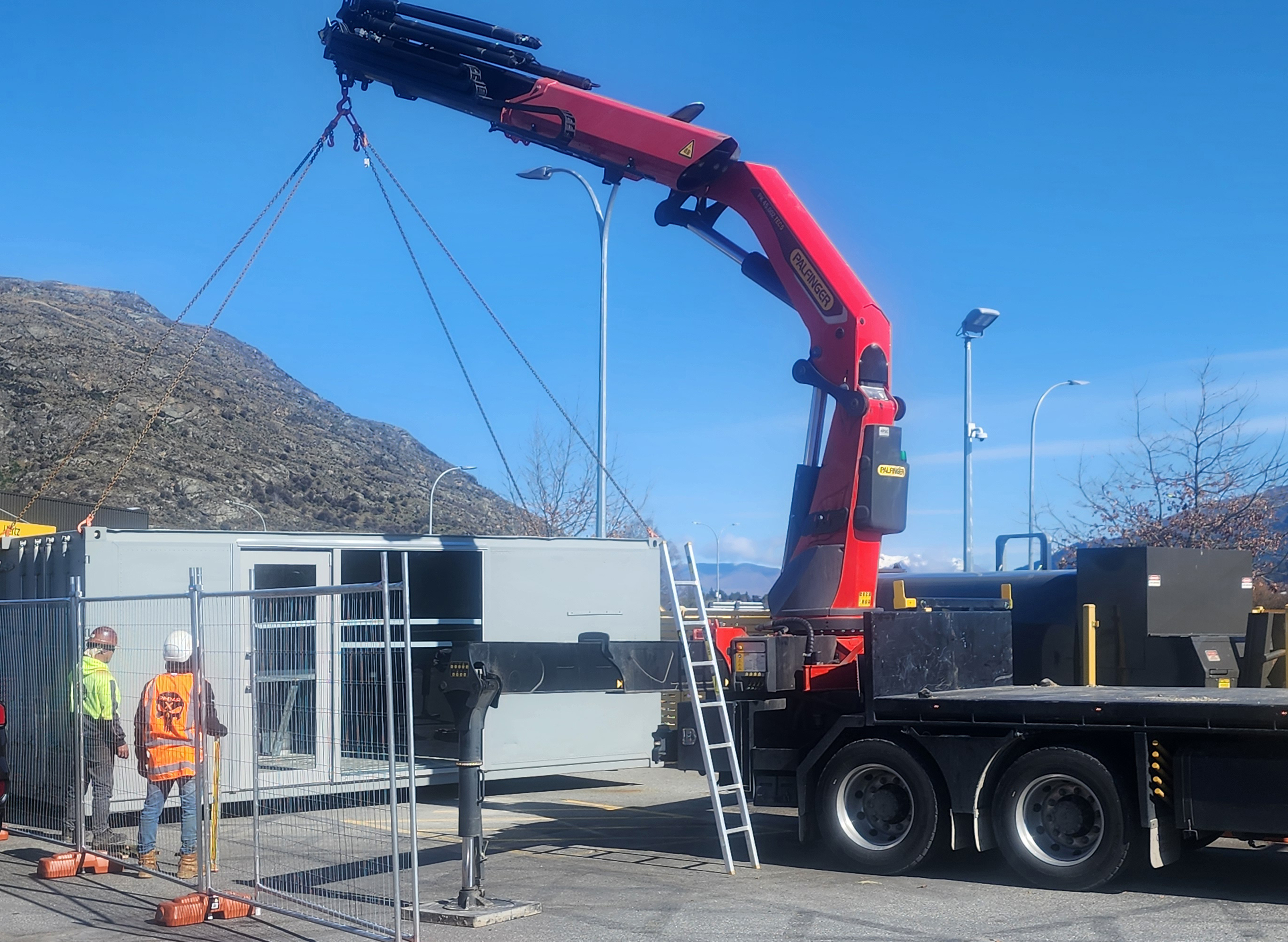 They started with an insulated shipping container that was previously used for storage and added a disused glazing unit and light fittings. Stainless steel benches salvaged from two Queenstown businesses are supported by struts made from Rondo steel offcuts. Mesh came from an old section of perimeter fencing and a tray from a baggage make-up unit has found a new use. A hoist has also been added to lift and tip the heavy glass recycling bins.
