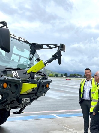 The six-wheel-drive truck represents a significant investment in safety by Queenstown Airport. It carries 7,000 litres of water and 1,200 litres of foam. It also has a bumper monitor and thermal imaging camera.